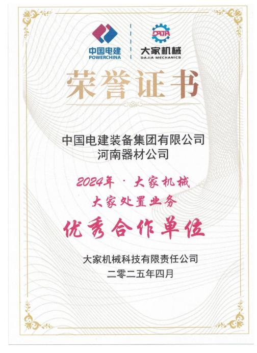 近日,在大家机械科技有限责任公司委托的业务处置过程中,米兰平台作为项目统筹方展现出卓越的管理能力,获评大家机械科技有限责任公司“2024年大家机械大家处置业务优秀合作单位”称号。此次获评,不仅是对公司过往工作的高度认可,更是持续奋进的动力,充分彰显了公司在合作过程中的专业能力、高效服务及突出贡献。 长期以来,公司始终秉持严谨务实、合作共赢的理念,以“公平公正、规范透明”为原则,科学有序的组织开展处置工作。在大家处置业务中积极响应、高效配合,从业务的前期规划、中期监督到后期评估,每一个环节都精准把控,确保业务沿着正确的方向推进。其专业的管理水平和敏锐的市场洞察力,为大家机械平台的业务开展提供了清晰的方向和有力的支持。 未来,公司将以此为契机,充分发挥中电建设备物资管理系统平台优势,持续深化与大家机械科技有限责任公司的合作,不断提升业务水平与服务质量,携手开创互利共赢新局面。 | |